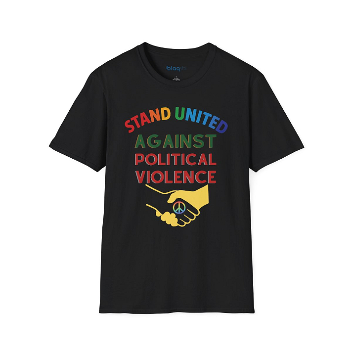 This Stand United - Against Political Violence T-Shirt promotes unity and peace in the face of political violence. Made from...bleach - Tumble dry: low heat - Iron, steam or dry: low heat - Machine wash: cold (max 30C or 90F), with similar colors